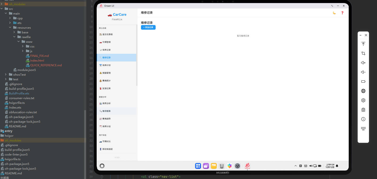 维修记录用于记录车辆的故障和维修情况。与保养记录不同,维修记录通常是由于车辆出现问题而产生的。本文将详细讲解如何在Cordova&OpenHarmony框架中实现一个完整的维修记录管理系统,包括数据存储、搜索功能和维修历史分析。
