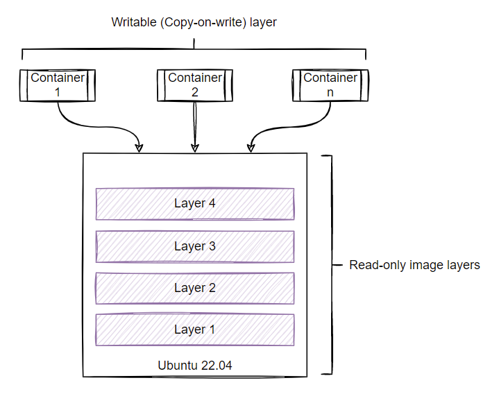 基础 Docker 镜像上覆盖着只读层,每次镜像发生更改时都会创建新的只读层。每个新层代表镜像的最新版本。最终镜像由所有层合并而成。镜像的每个层都会被保存,以便在必要时快速回滚。这种方案可以节省磁盘空间并缩短容器构建时间。