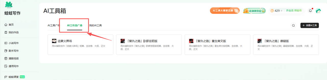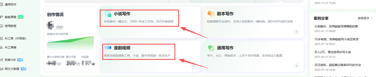 一、蛙蛙写作:网文专属的AI写作工具天花板,评分:9.9