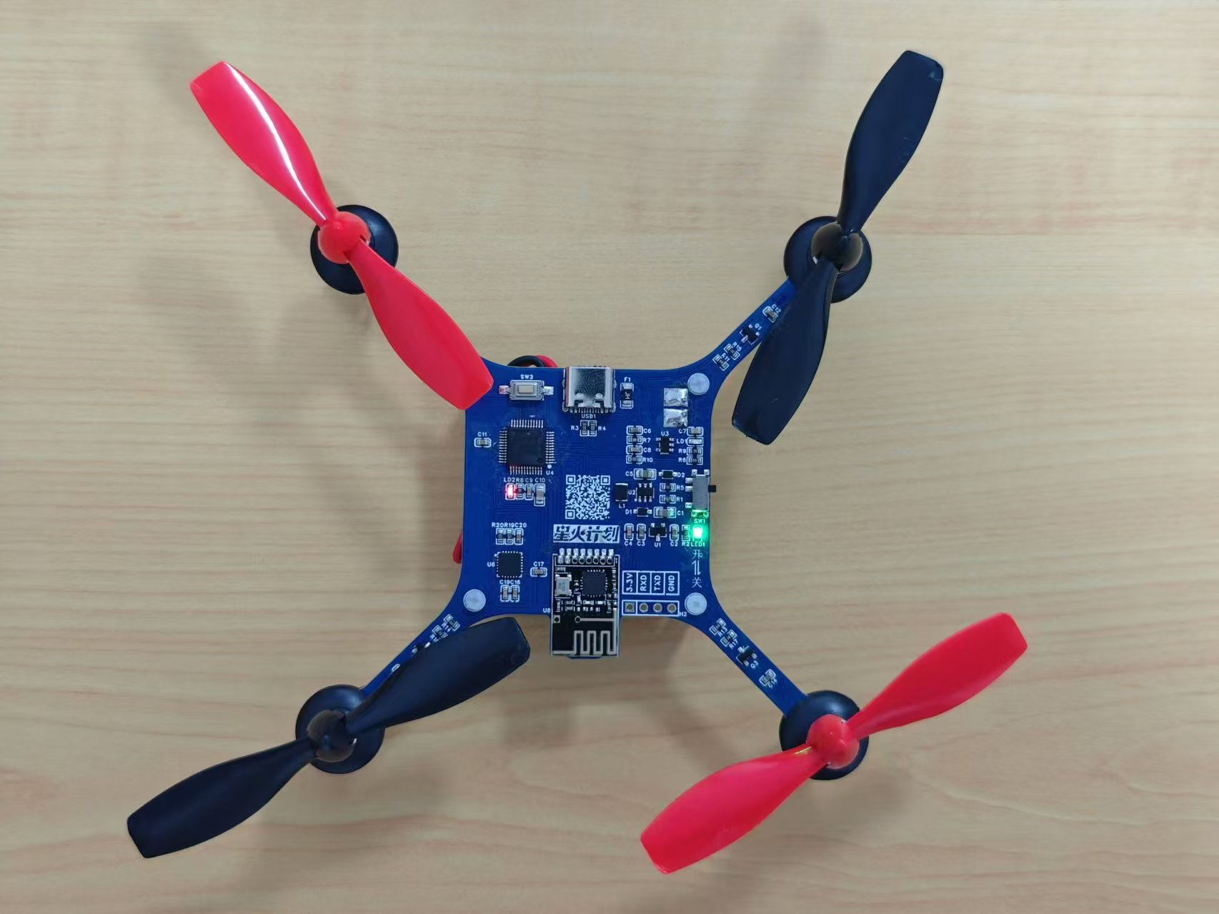 B站视频--功能演示及介绍\] [https://www.bilibili.com/video/BV1NJBRYAETE/?vd_source=d0d864966879d6d45d0a42936cbb68ea](https://www.bilibili.com/video/BV1NJBRYAETE/?vd_source=d0d864966879d6d45d0a42936cbb68ea "https://www.bilibili.com/video/BV1NJBRYAETE/?vd_source=d0d864966879d6d45d0a42936cbb68ea") **项目功能** **DMA I2C 驱动OLED黑屏 \| 已解决 https://www.stcaimcu.com/thread-5917-1-1.html (出处: 国芯人工智能技术交流网站)** 本项目是基于STC8051U/AI8051U单片机为主控的无人机/四轴飞行器,通过NRF24L01 2.4G无线通信实现主控板和遥控板之间的连接,可实现各个方向的平稳飞行控制,具有失控保护、高度检测、航向检测和电量检测和显示功能,自带电池充电功能。 **项目参数** STC8051U/AI8051U:主控芯片。 8520空心杯电机:飞行控制。 MPU6050陀螺仪:用于检测XYZ轴的角度,控制无人机平衡和航向。 BMP280气压计:通过气压变换检测高度变化。 2.4G NRF24L01:用于和遥控板间进行无线通讯控制。 LTH7:锂电池充电保护。 OLED12864液晶显示屏:显示当前高度,姿态、电量和航向等相关参数。 6个按键:4个用于姿态微调,其余两个预留。 两个摇杆:一个控制电机输出功率,另一个控制无人机/四轴飞行器的飞行方向。 **原理解析(硬件说明)** 1.TYPE-C接口:主要用于锂电池充电和USB给STC8051U/AI8051U单片机进行程序下载。 2.3.7-\>4.3V锂电池升压电路:使用MT3608芯片实现3.7-\>4.3V的DC-DC升压。 3.4.3V转3.3V电路:使用662k芯片实现4.3V转3.3V功能,此外还加上了电源指示灯。 4.锂电池充电电路:实现USB接口电源给锂电池充电,充电电流:500mA,采用红色的LED指示充电状态。 5.电量检测电路:通过电阻分压的形式检测锂电池两端电压,通过单片机实时监控。 6.运行指示灯:用于判断系统的运行状态。 7.预留串口:用于后期功能扩展。 8.单片机电路:STC8051U/AI8051U最小系统,通过USB直接下载程序。 9.按键电路:用于控制程序下载。 10.M2螺丝:用于固定无人机/四轴飞行器。 11.电机驱动电路:用于驱动4个8520空心杯电机。 12.姿态检测电路:适用MPU6050进行无人机/四轴飞行器和的姿态检测,反馈给主控芯片控制平衡。 13.高度检测电路:通过BMP280气压计检测气压的变化,从而计算当前高度。 14.无线通信电路:和遥控板进行无线通信控制。 15.0.96寸OLED显示屏:用于实时显示当前无人机/四轴飞行器的状态参数。 16.左摇杆:控制油门大小和航向,右摇杆:控制飞机前后左右方向。 注:详细电路及功能参见开源原理图 **软件代码** 完整代码及注释参见附录源程序。 **注意事项** 1.四个电机安装要注意两个顺时针和两个逆时针方向。 2.电池要注意使用放电倍率25C及以上的航模电池。 3.无人机和遥控板PCB均为添加工艺边方便SMT贴片的,如不需要可自行去掉。 4.整机重量在70g左右,载重建议在50g以内。 **组装流程** 1.电子元器件按位号焊接好。 2.四个电机安装要保证两个对角的电机方向不一样,注意螺旋桨也要不一样。 3.电池采用BOM清单链接的双面胶粘住,无人机的注意多叠几层双面胶,防止电池碰到BMP280气压计。 注:特别注意电池接线线序,不要接反!!! **实物图** 1.主控板:   2.遥控板:   基于AI8051U的无人机/四轴飞行器 \| 全部开源,源程序,SCH/PCB https://www.stcaimcu.com/thread-18669-1-1.html (出处: 国芯人工智能技术交流网站) 文档下载 [https://mp.csdn.net/mp_download/manage/download/UpDetailed](https://mp.csdn.net/mp_download/manage/download/UpDetailed "https://mp.csdn.net/mp_download/manage/download/UpDetailed") **转载文章,资料整理,方便学习**