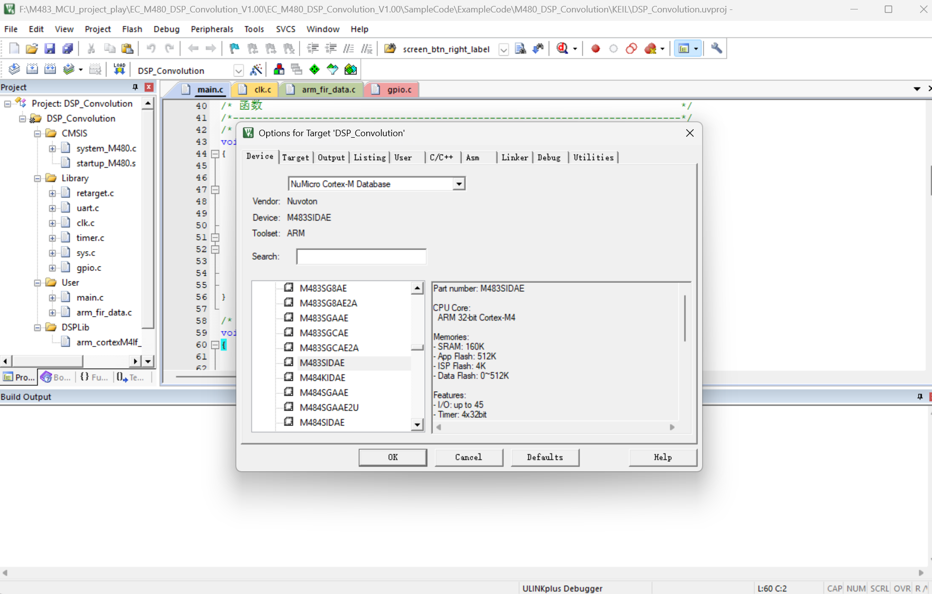 - Keil 适配:这款 MCU 属于新唐(Nuvoton)M480 系列,需在 Keil uVision5 中安装新唐的器件库(NuMicro M480 Series Device Pack)才能编译、调试;