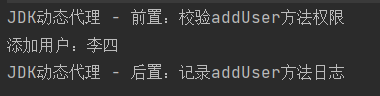 System.out.println("静态代理 - 前置:校验添加用户权限");