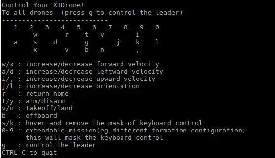 该节点通过接收键盘输入来控制飞行器的前进、后退、左移、右移、上升、下降以及旋转等动作