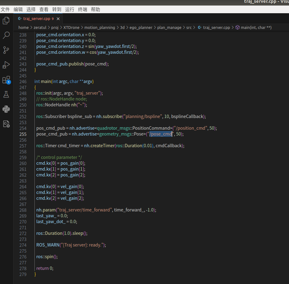在xtdrone自己集成ego planner,里面有个代码能够把作业点转化为速度分量的形式,发送commond信息