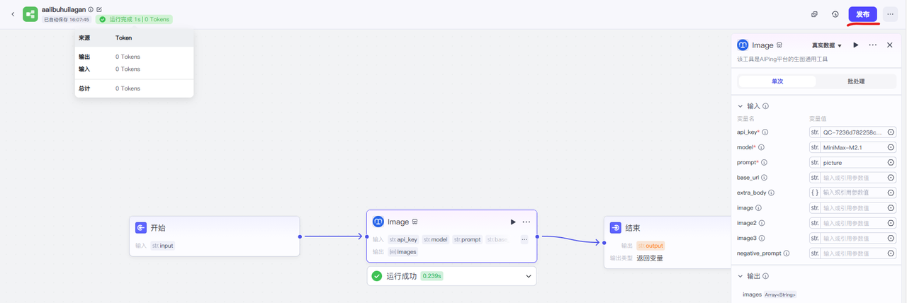 测试与发布点击右上角「试运行」,输入测试指令验证模型是否正常响应;确认结果符合预期后,点击「发布」,即可在 Coze 对话中使用配置好的 MiniMax M2.1 智能体。