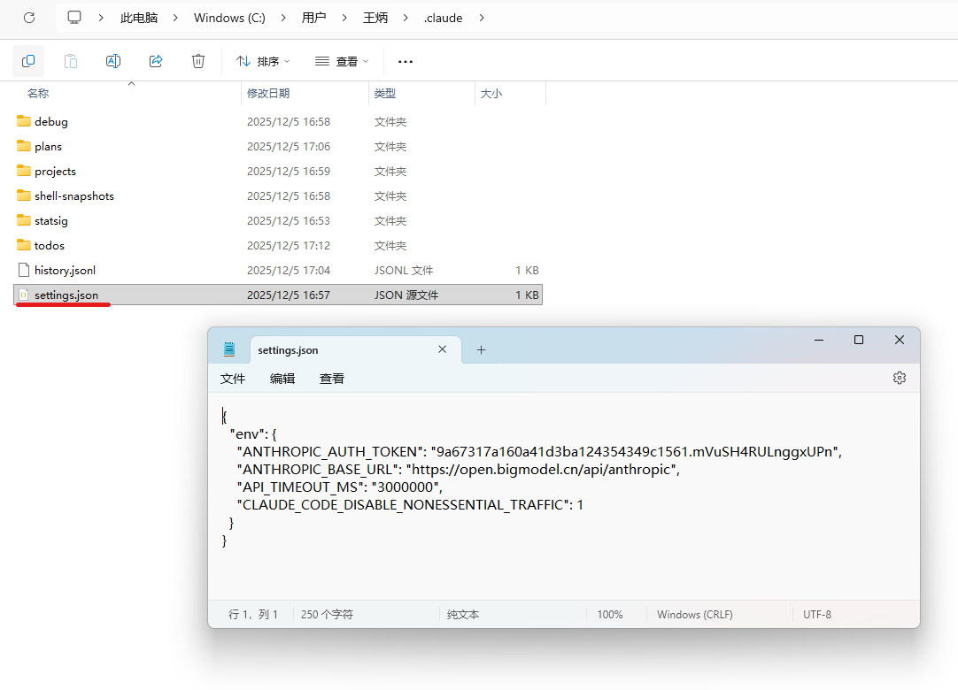 ~/.claude/settings.json(Windows 系统路径为C:\Users\你的用户名\.claude\settings.json); -