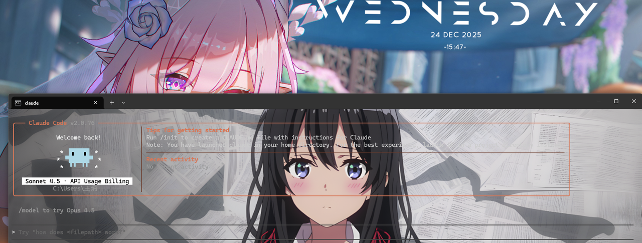 在终端输入以下命令启动 Claude Code,即可直接调用 GLM-4.7 进行编码任务: