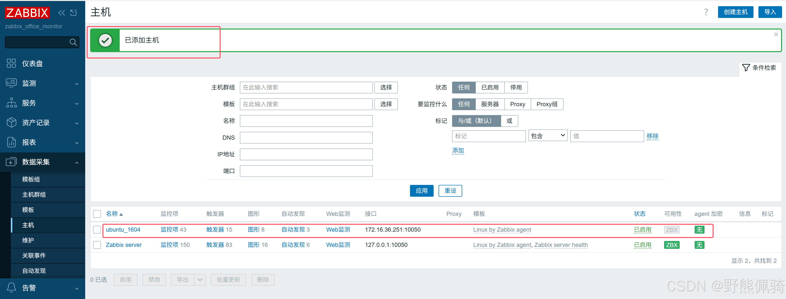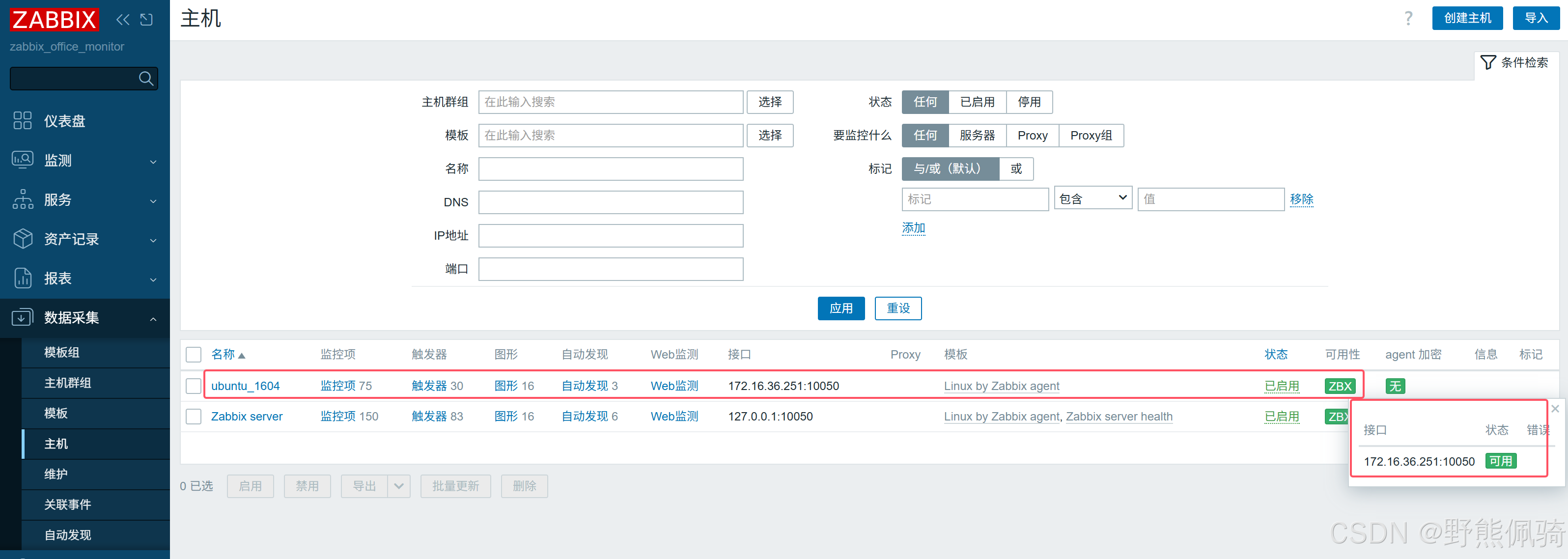 由上图可见,该主机可用性状态已经转变为绿色"可用",说明添加成功。