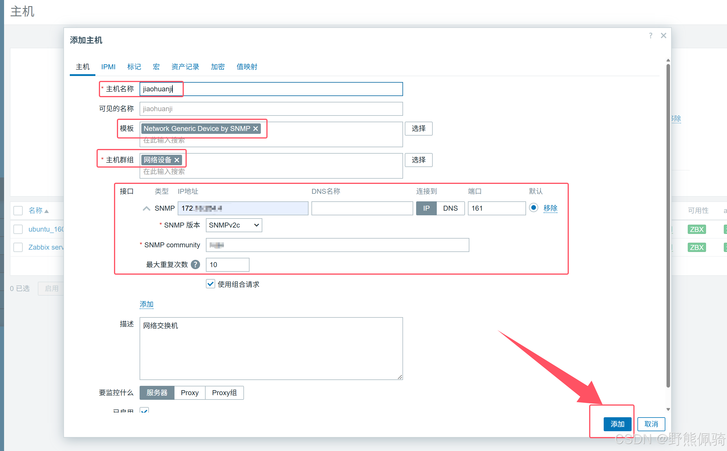 **主机群组:**网络设备(选择上面创建的"网络设备"群组)