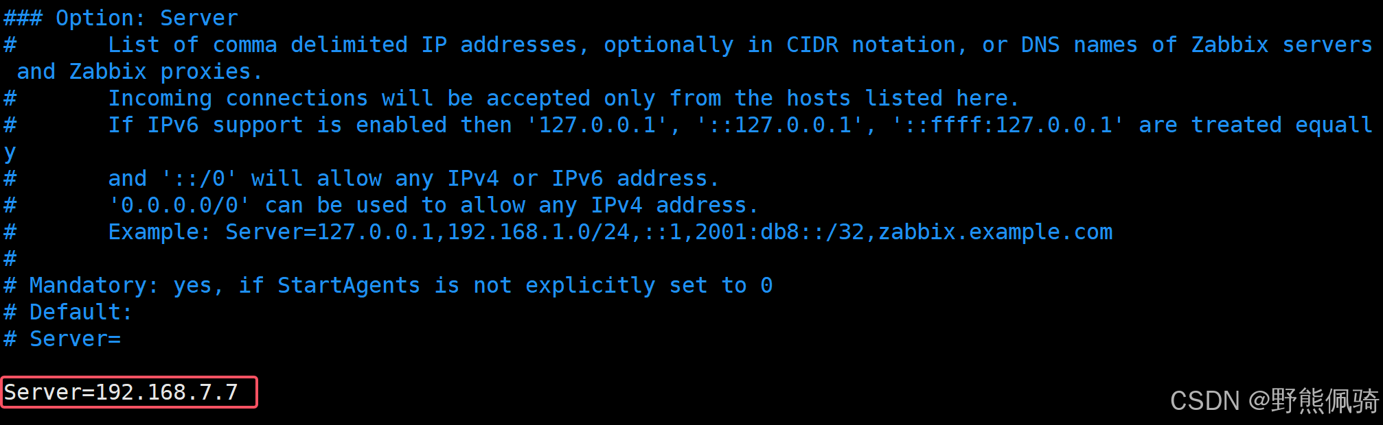 修改zabbix配置文件,填写Zabbix监控服务端IP地址