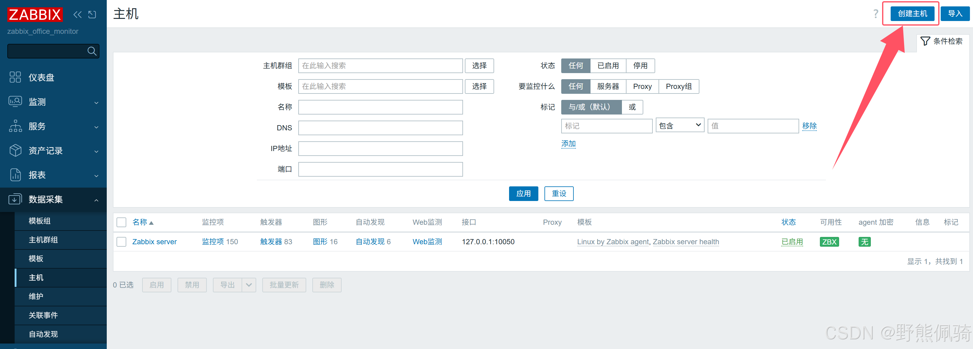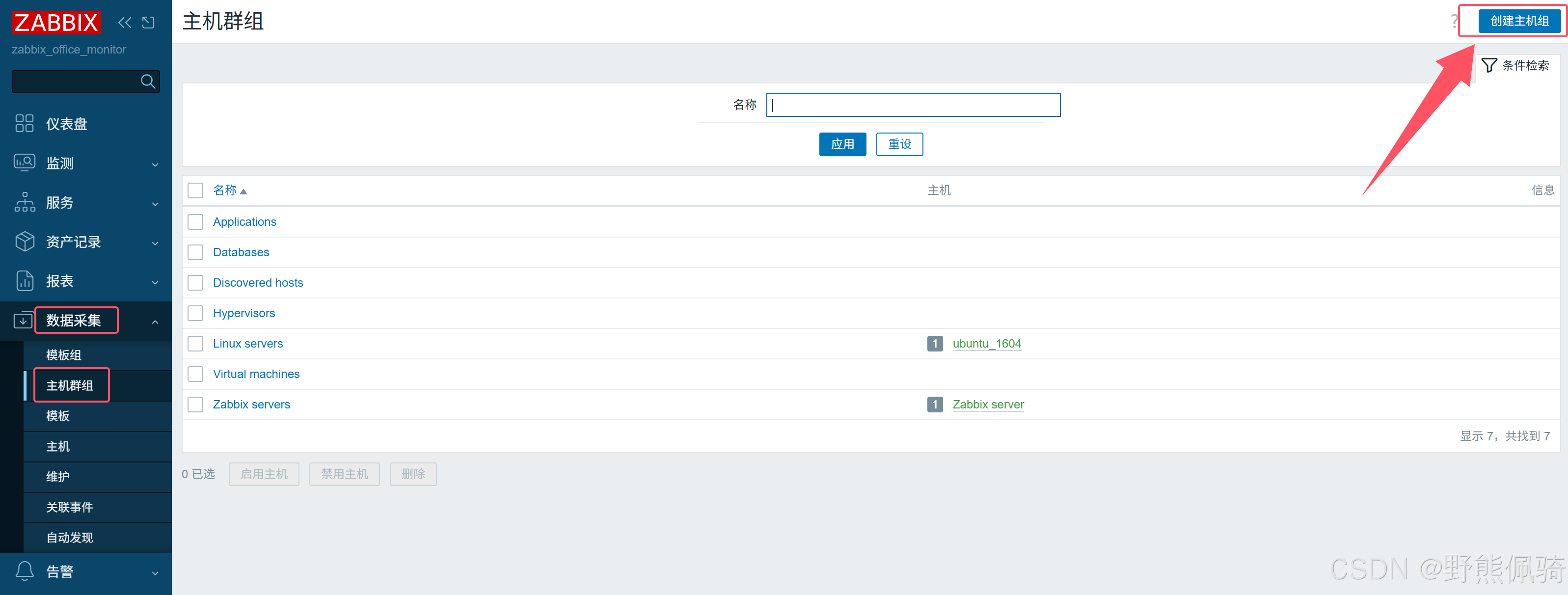 - 选择"数据采集"-->"主机群组",点击"创建主机组"