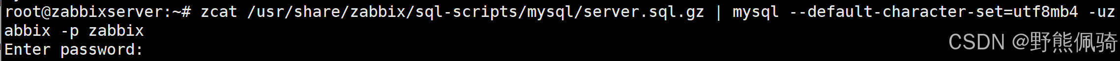 root@zabbixserver:~# zcat /usr/share/zabbix/sql-scripts/mysql/server.sql.gz | mysql --default-character-set=utf8mb4 -uzabbix -p zabbix