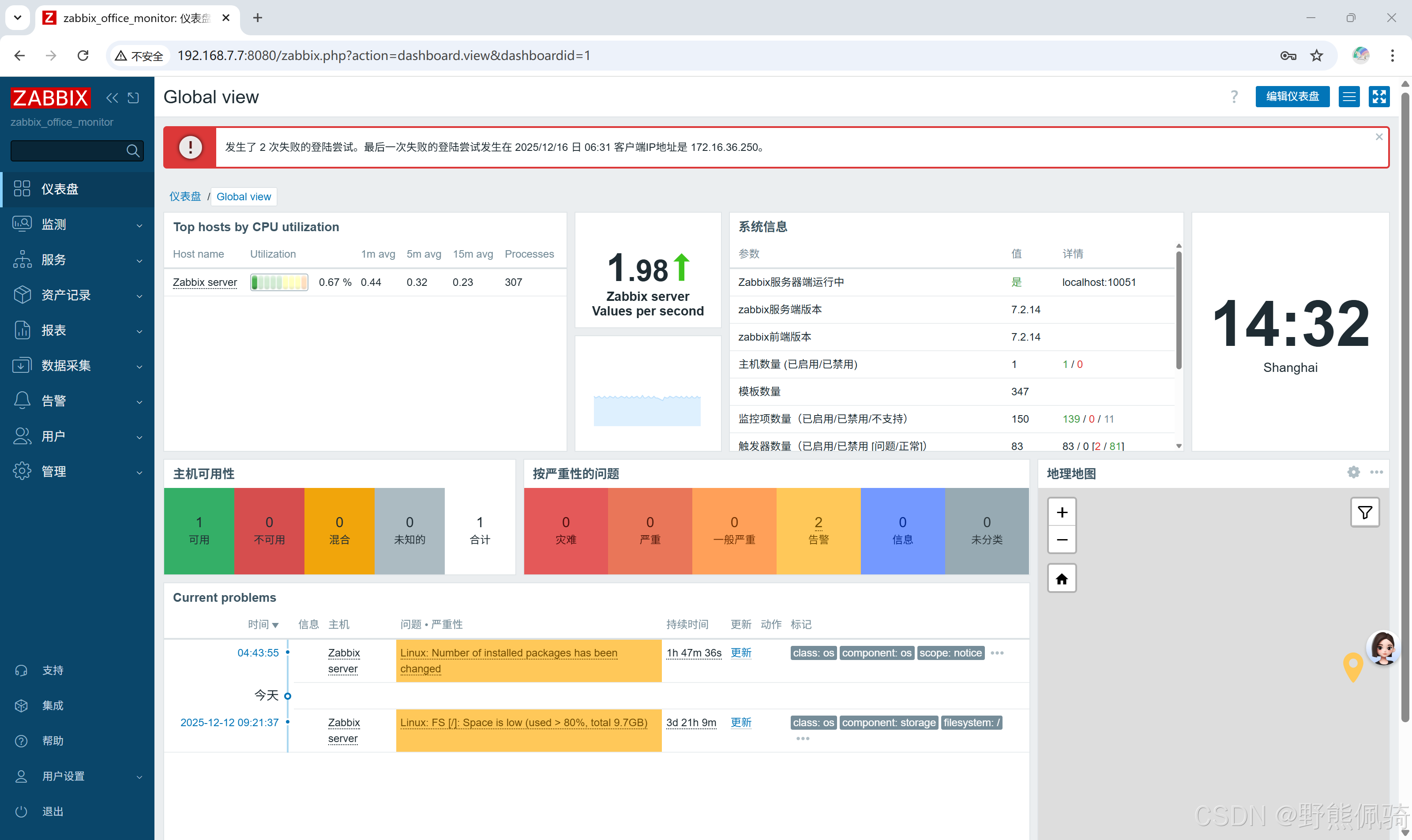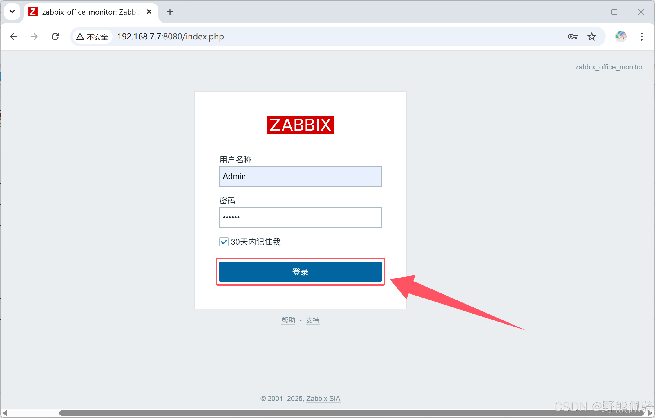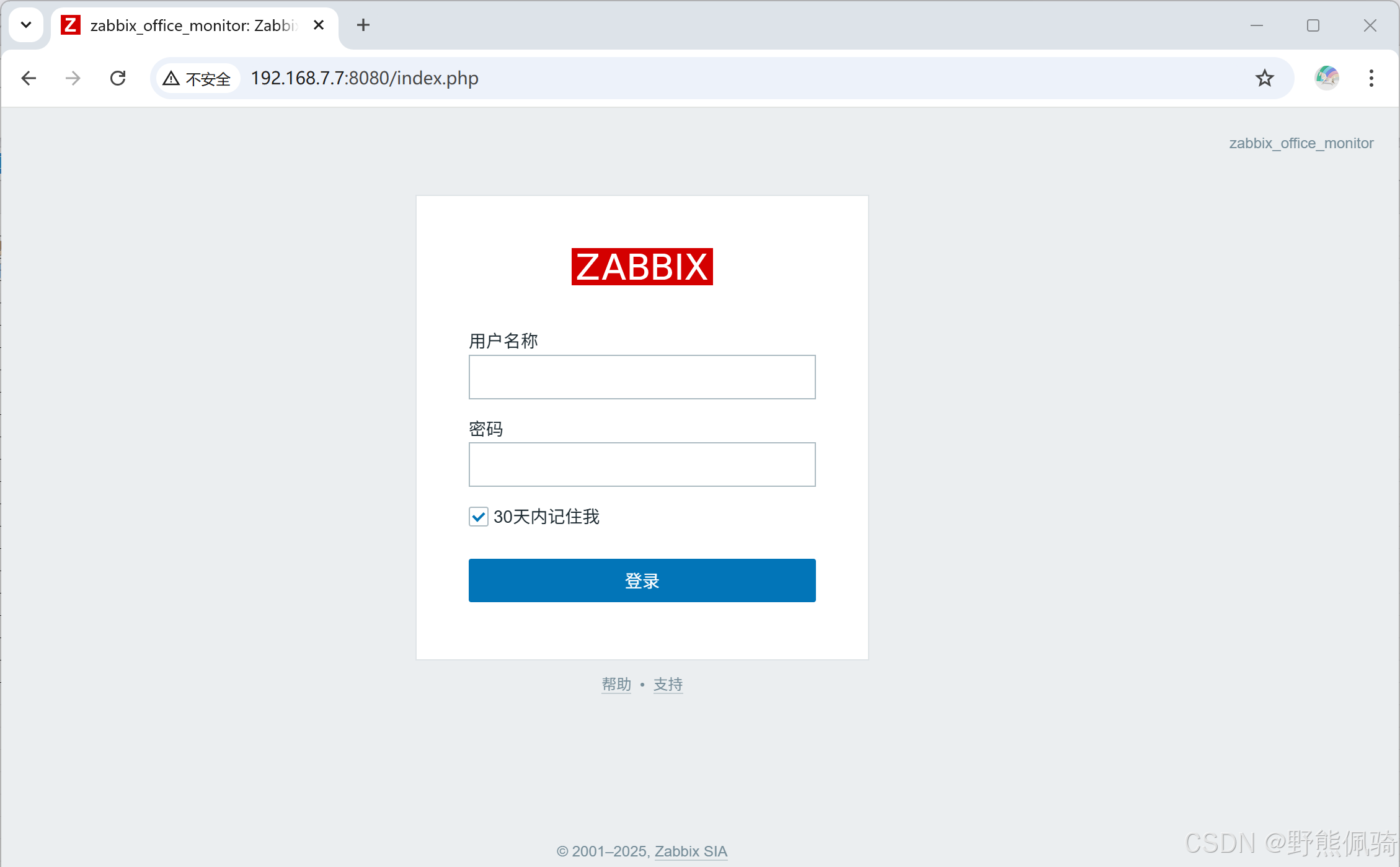 登录Zabbix监控管理平台,此处是http://192.168.7.7:8080/