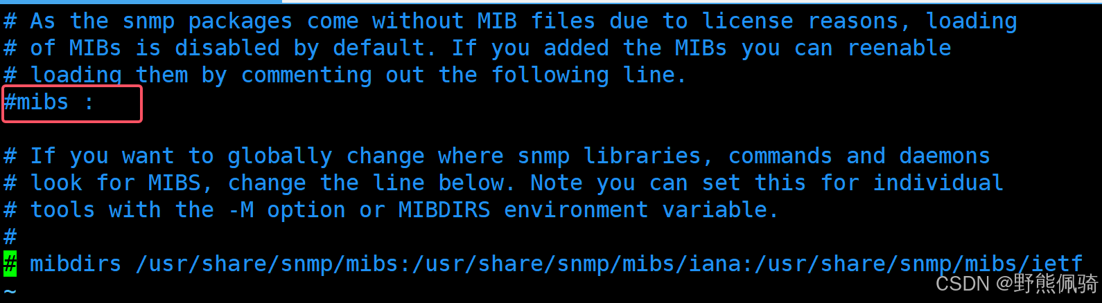 必须注释以"mibs :"开头的行,以加载所有可用MIB。