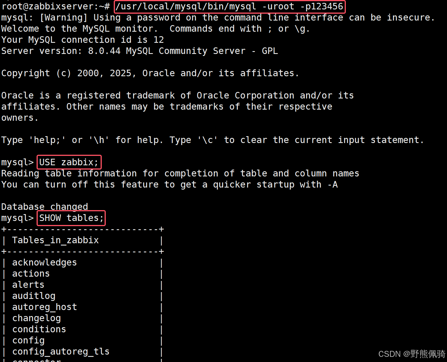 root@zabbixserver:~# /usr/local/mysql/bin/mysql -uroot -p123456