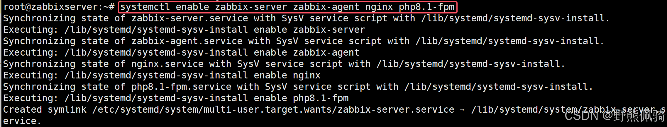 root@zabbixserver:~# systemctl enable zabbix-server zabbix-agent nginx php8.1-fpm