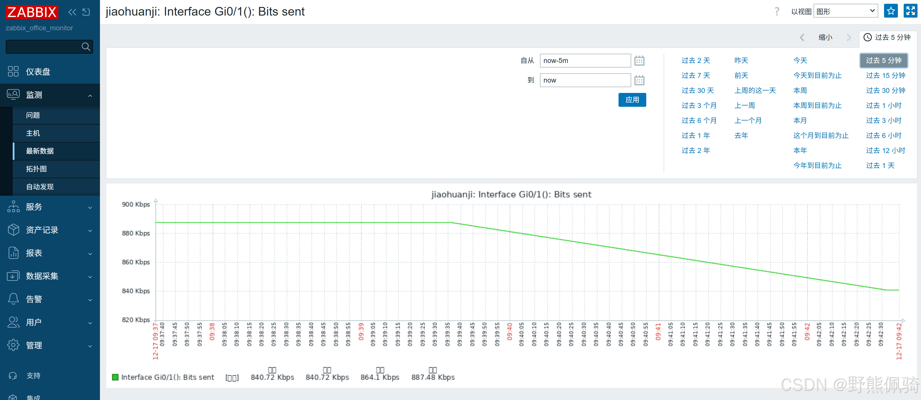 - 点击最新数据,查看Interface Gi0/1接口的发送流量监控数据