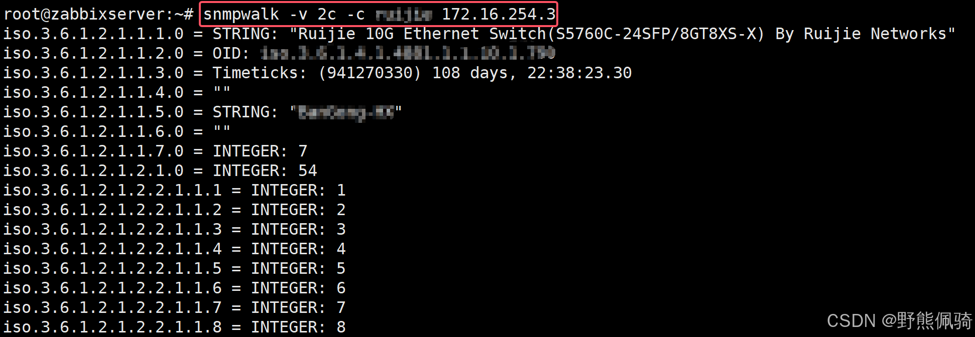 root@zabbixserver:~# snmpwalk -v 2c -c SNMP团体字 172.16.254.3