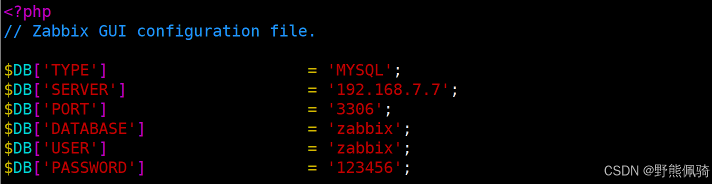 当Zabbix数据库服务器的IP地址有变动时(如DHCP分配IP地址),需要修改zabbix.conf.php中的$DB['SERVER']的值,否则无法正常访问Zabbix监控平台。