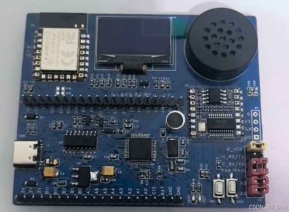 该模组采用5V供电,自带功放电路,直接接入扬声器(8Ω1W)即可输出,麦克风输入也无需外置处理电路,直接接入即可,灵敏度为-38DB。硬件实物如图所示: