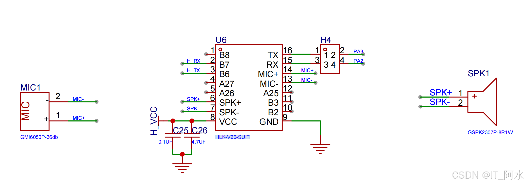 HLK-V20-SUIT模组采用串口通讯方式,语音词条响应成功通过串口返回应答信息,其硬件接口设计如下: