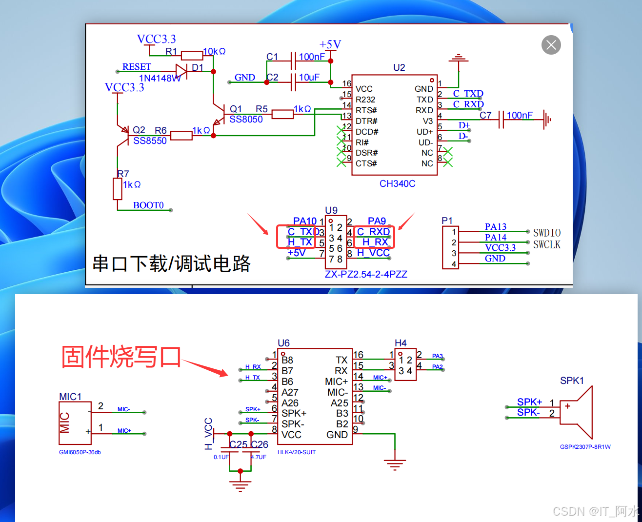 在硬件失实物上,C_RX与PA9连接、TX与PA10连接则是给STM32系统板烧写程序;C_RX与H_RX连接、TX与H_TX连接则是给海凌科模组烧写固件。因此本次需要将跳线帽将C_RX与H_RX连接、TX与H_TX连接。