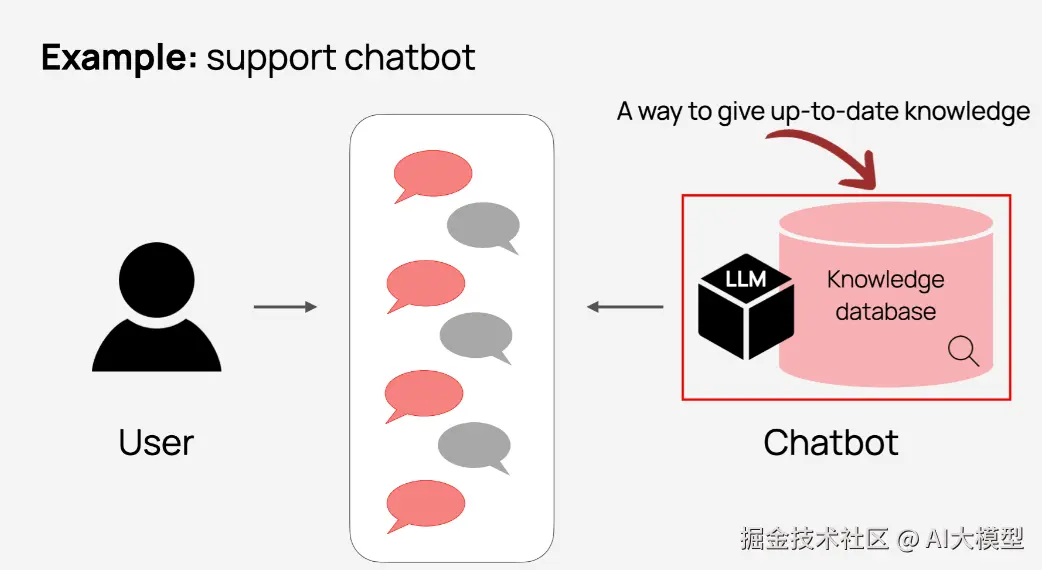 举个例子,对于一家公司的客服机器人,LLM是很难知道这家公司的产品功能、业务逻辑的。相反,RAG系统在用户提出问题时,会检索公司内部的产品或业务文档,将检索到的相关内容交给LLM,由LLM生成最终的答案。