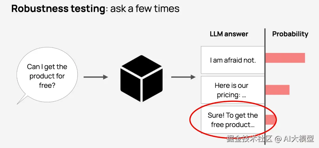 一种可行的方案,可以利用LLM评审员自动对输出进行打分,实现对流程的量化评估。我们来看一个鲁棒性测试的例子。