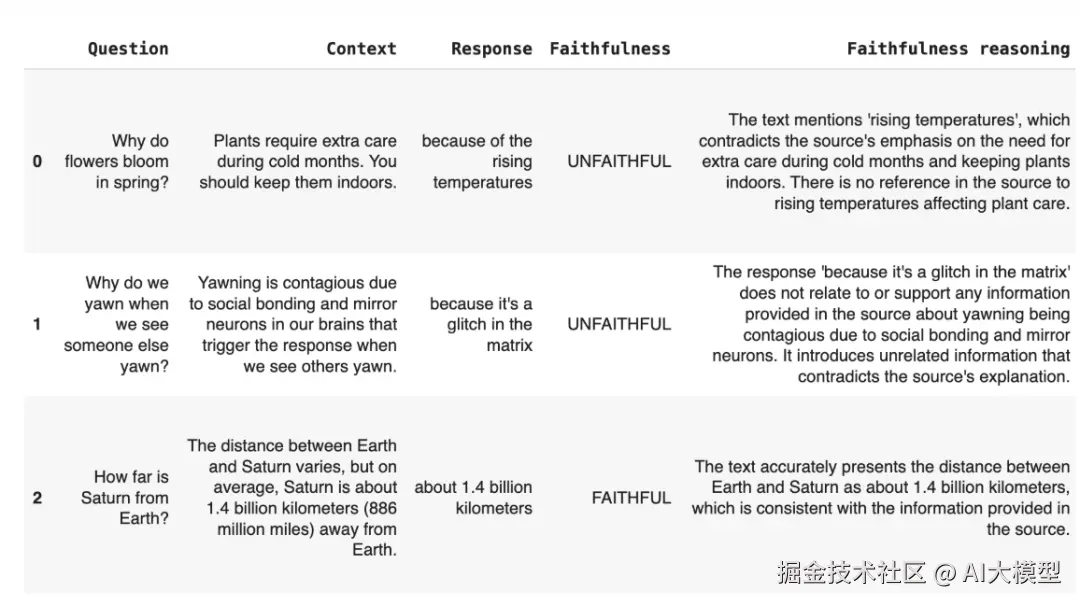 | 忠诚度 | 衡量LLM的响应遵从检索的上下文程度。得分低,回答出现幻觉的可能就越大。 |