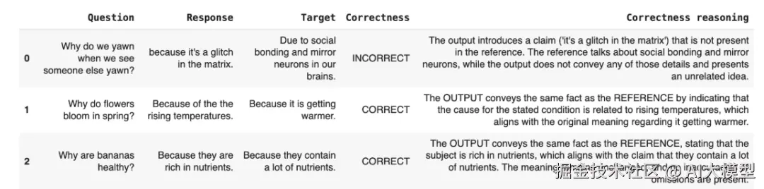 LLM评审员将会按照上述提示词返回结果,并附有理由,示例如下:
