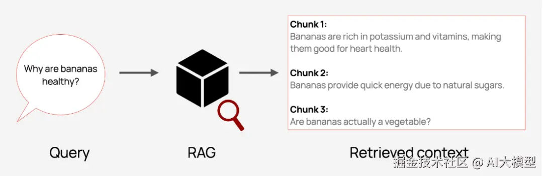 举个简单的例子:假设关于香蕉的查询检索到三个短文本块。每个文本块都是一个句子,可能来自不同的文档。