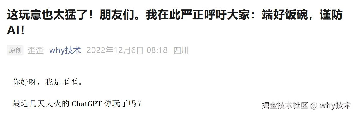 犹记得 2022 年末 ChatGPT 横空出世的时候,我写过一篇蹭热度的文章,当时取标题为了骗点击率,就故意写的"危言耸听"一点:
