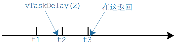 注意,基于Tick实现的延时并不精确,比如vTaskDelay(2)的本意是延迟2个Tick周期,有可能经过1个Tick多一点就返回了。