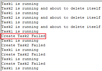 在任务1的函数中,如果不调用vTaskDelay,则Idle任务用于没有机会执行,它就无法释放创建任务2是分配的内存。