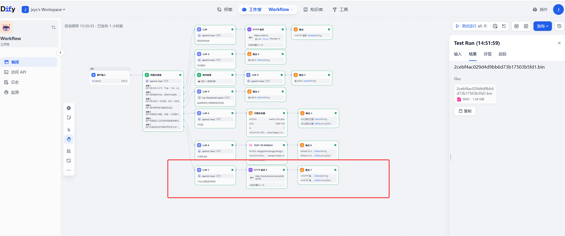 body或files。 - 注意:如果是 Dify 的 Workflow 模式,返回的是文件流;如果是 Chatflow 模式,Dify 会自动解析为音频播放器。