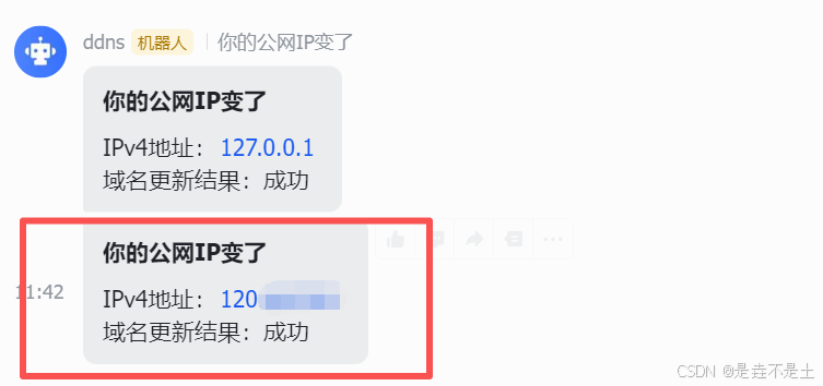 在此之后,就会持续监控IP是否发生变化,如果发生变化则会重新进行同步操作,而同步完成之后,可以查看飞书与阿里云的域名解析部分,查看是否成功进行了解析: