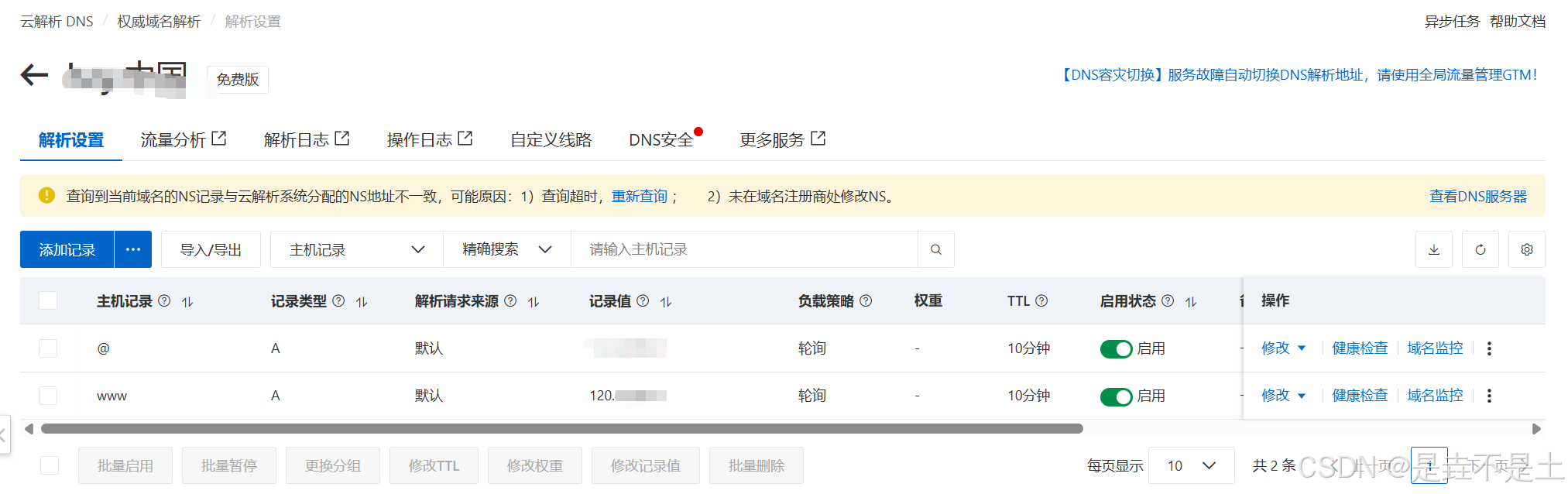 至此,就可以彻底的保存文件了,保存完成后。在我们这里的配置保存后,它直接自动给我们创建好新的A记录了: