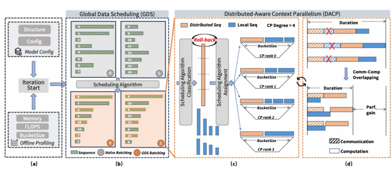 PAI 团队在ICML 2025 上发表长序列训练优化 ChunkFlow工作后,再度提出高效动态数据调度方案 Skrull ,进一步从上下文并行和负载均衡的角度,优化系统训练性能。Skrull 研究成果被 NeurIPS 2025 收录 ,《Skrull: Towards Efficient Long Context Fine-tuning through Dynamic Data Scheduling》(https://arxiv.org/abs/2505.19609),同时获邀在 ChinaSys 2025 与参会者分享其技术原理。