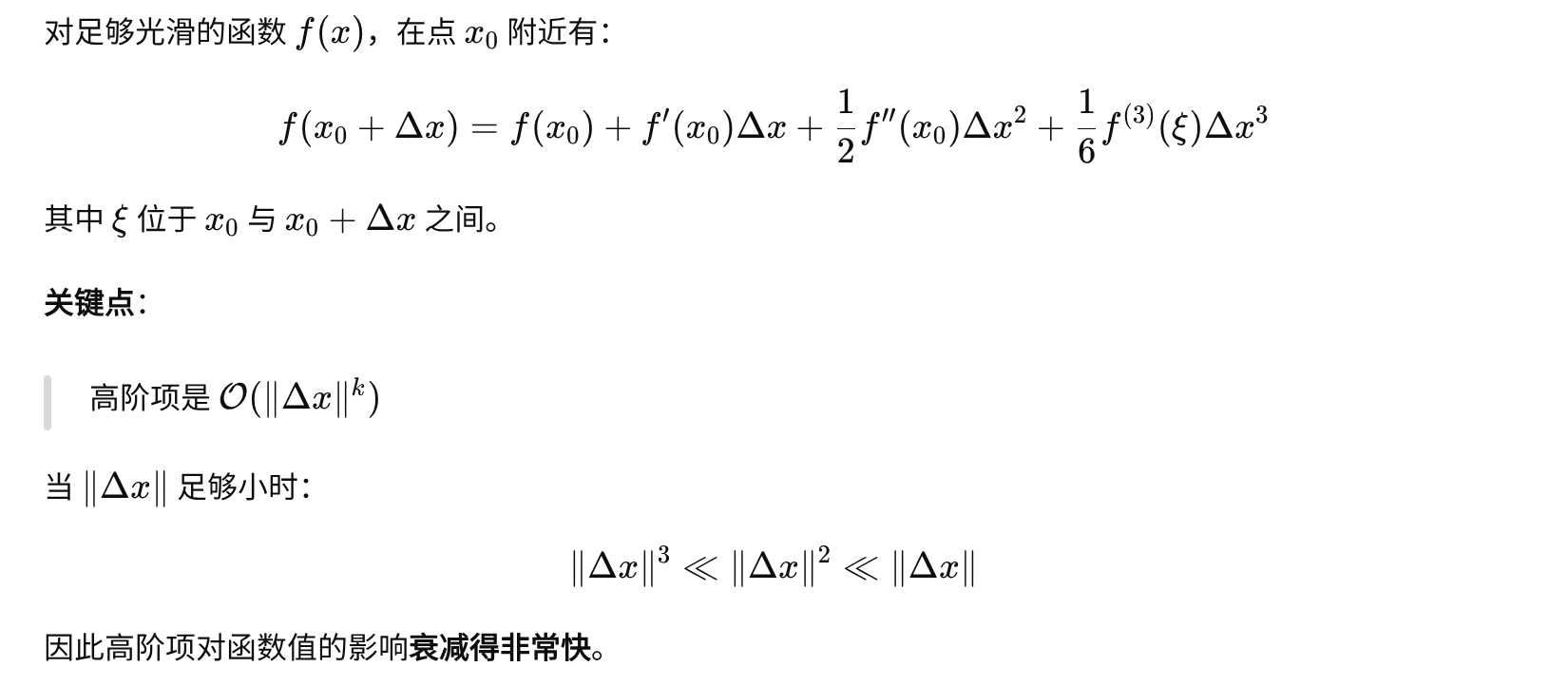 J ( ω ⃗ k + ϵ ⃗ ) ≈ J ( ω ⃗ k ) + ∇ J ( ω ⃗ k ) T ϵ ⃗ J(\vec{\omega}_k + \vec{\epsilon}) \approx J(\vec{\omega}_k) + \nabla J(\vec{\omega}_k)^T\ \vec{\epsilon} J(ω k+ϵ )≈J(ω k)+∇J(ω k)T ϵ