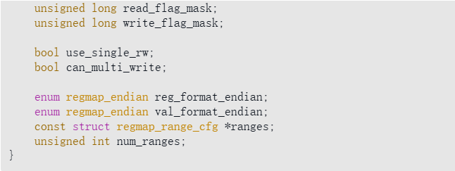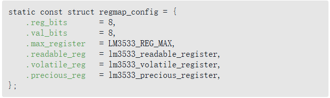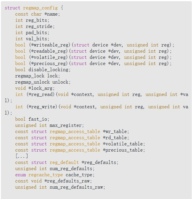 通过包含这个头文件,许多数据结构都将可用,其中最重要的是struct regmap_config。