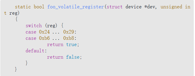 也是可选的回调函数,每当通过Regmap缓存读取或写入寄存器时,就会调用它。如果寄存器是易失性的,该回调函数应返回true,然后在寄存器上直接进行读取/写入。如果返回false,则表示寄存器是可缓存的。在这种情况下,使用缓存执行读取操作,并在执行写入操作时写入缓存:
