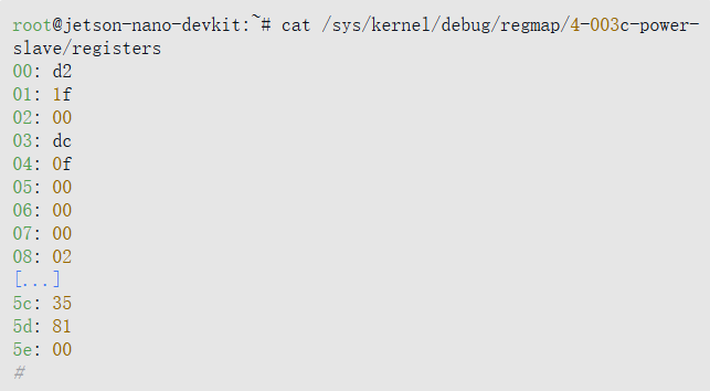 之后,你可以在/sys/kernel/debug/regmap/目录下找到debugfs寄存器映射实现。这个由内核源代码中的drivers/base/regmap/regmap-debugfs.c实现的debugfs视图包含了基于Regmap API的驱动程序/外设的寄存器缓存(镜像)。从Regmap的主debugfs目录中,可以使用以下命令获取基于Regmap API的驱动程序的设备列表: