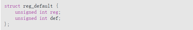 缓存类型默认设置为REGCACHE_NONE,这意味着缓存被禁用。其他值只是定义了如何存储缓存。你的设备可能在某些寄存器中具有预定义的上电复位值。这些值可以存储在数组中,以便任何读取操作都返回该数组中包含的值。然而,任何写入操作都会影响设备中的实际寄存器,并更新该数组中的内容。这是一种可以用来加速访问设备的缓存。这个数组就是struct reg_default。该数据结构定义如下: