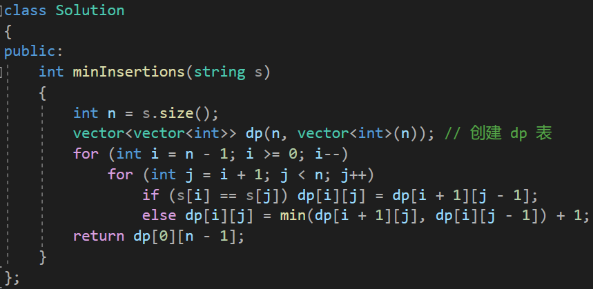 vector<vector<int>> dp(n, vector<int>(n)); // 创建 dp 表