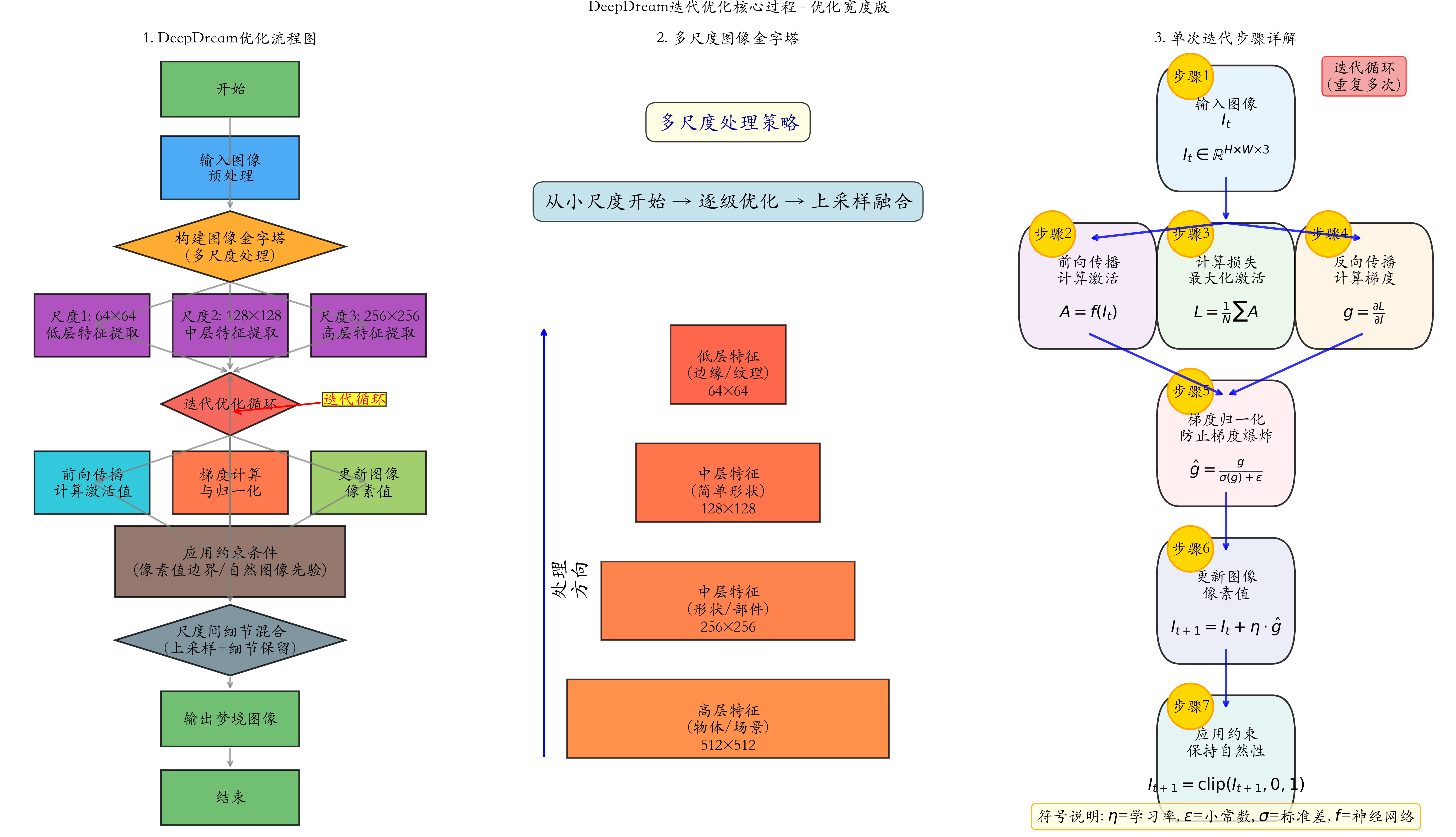 为了避免梯度爆炸和确保平稳优化,DeepDream采用了关键的梯度归一化技术,这种方法确保了无论原始梯度的幅度如何,更新步长都保持稳定。