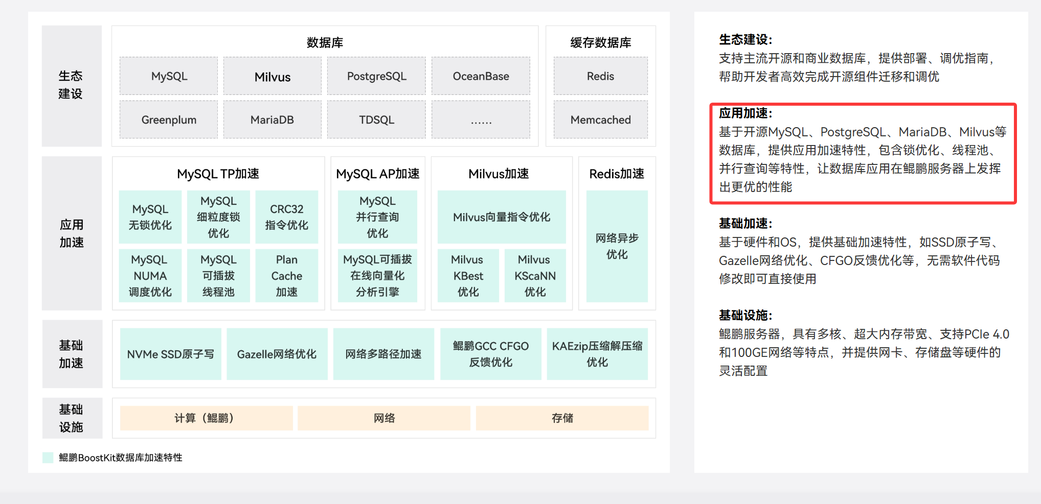 BoostKit 数据库优化套件通过软硬件协同提升数据库在鲲鹏服务器上的性能,其核心价值体现在: