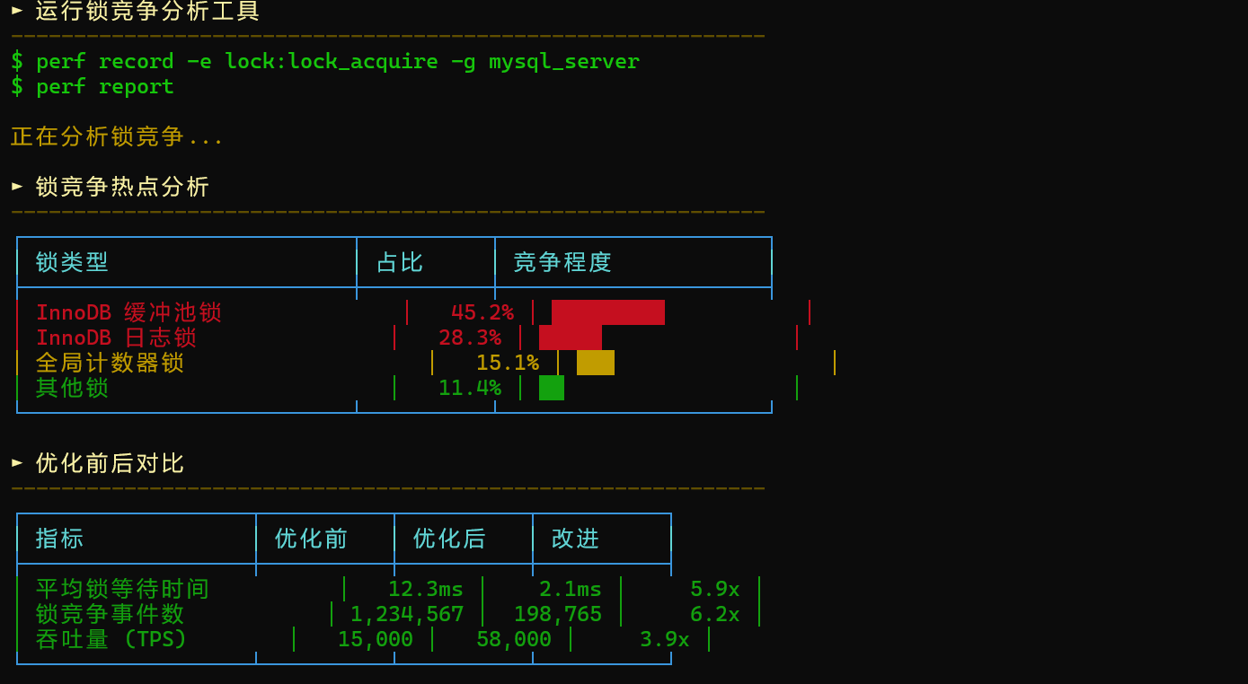 锁是所有数据库并发性能的核心瓶颈之一。随着 CPU 核心数量增加,传统互斥锁在高并发下会出现阻塞、抖动和过度上下文切换,导致整体吞吐严重受限。