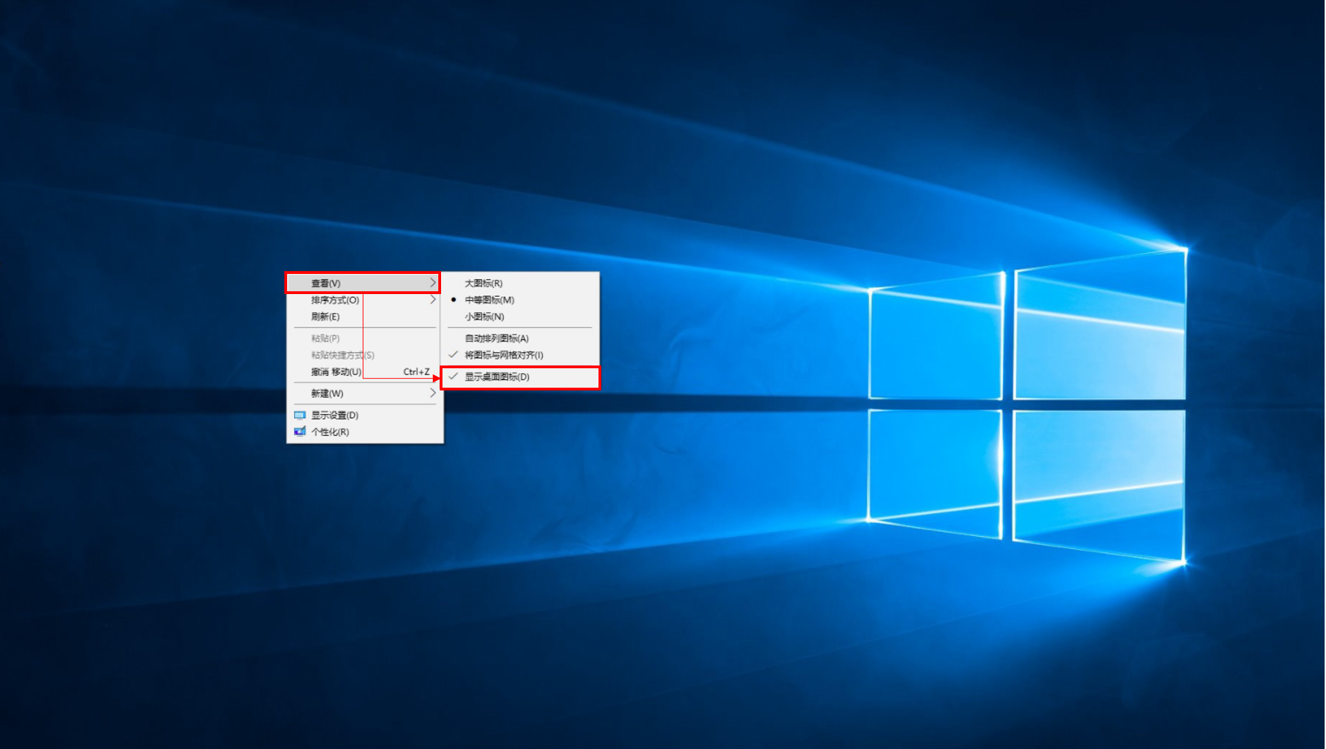 1.1 在桌面空白处,点击右键》查看》显示桌面图标,查看此选项是否有打勾。