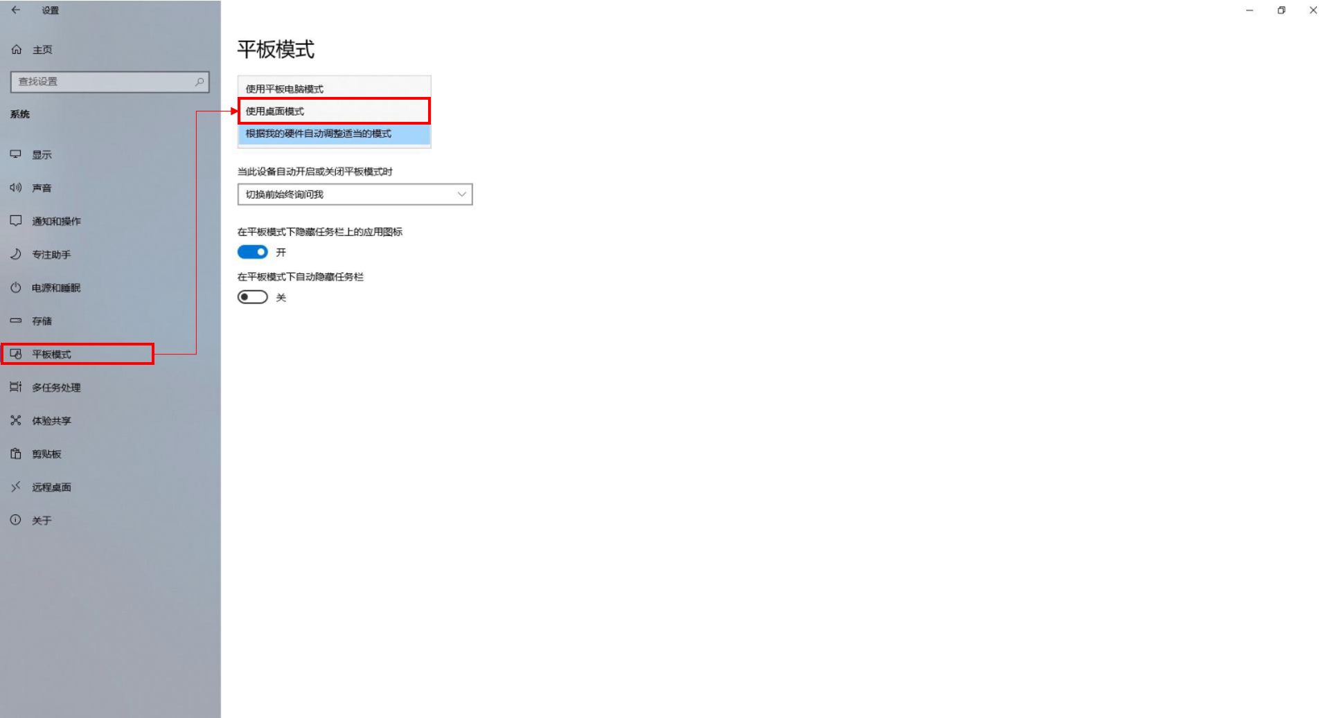 3.3 选择"平板模式",然后选择"使用桌面模式",再重启工控机即可