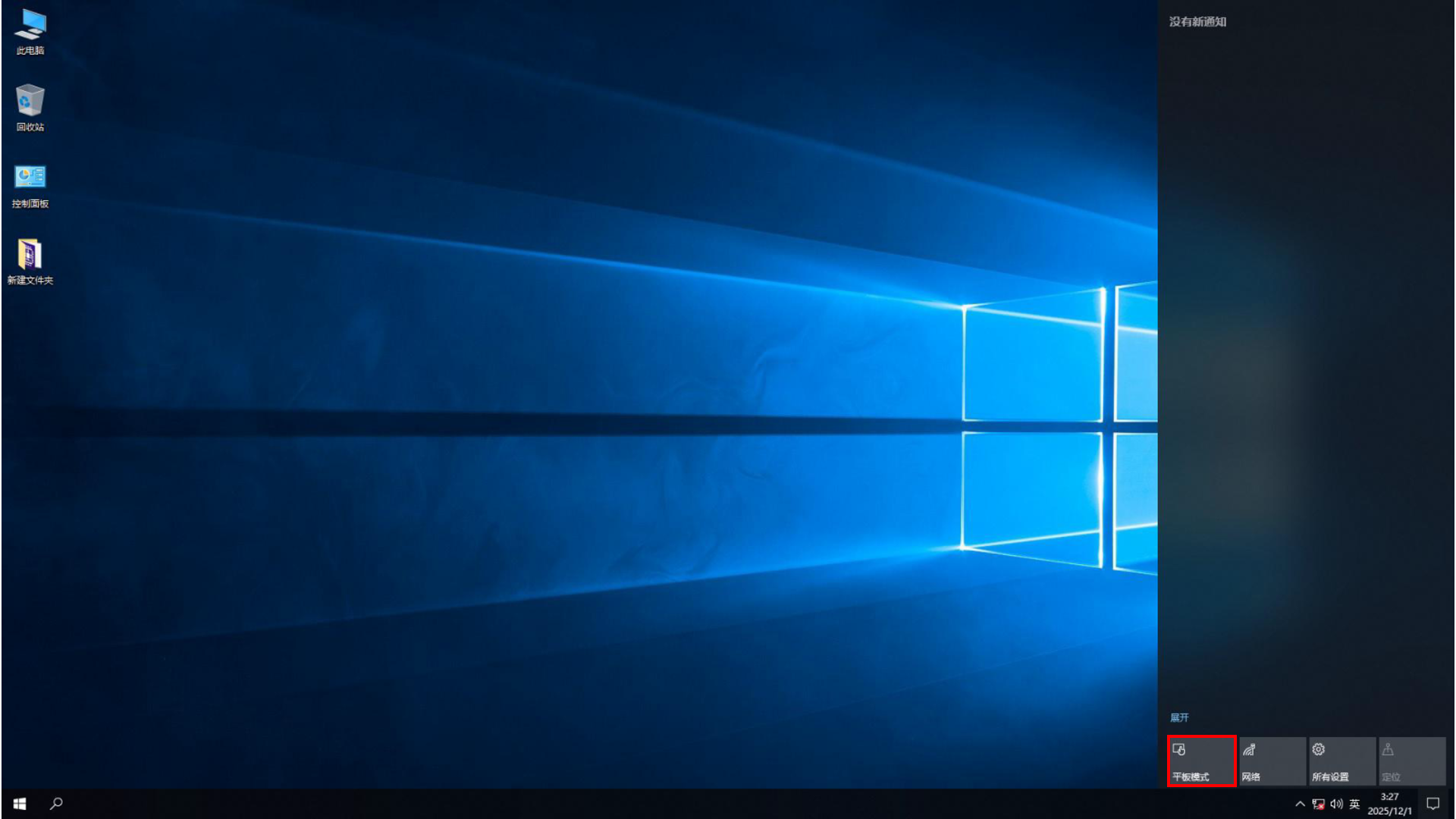 2.2 选择"平板模式",点击一下后即会自动切换为桌面模式